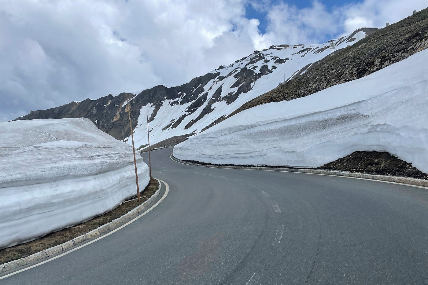 Departing from Maria Alm, it took a while to cycle along the Zell lake to Bruck, where the Großglocker climb officially begins. If you’re planning to just ride up there, Bruck is a perfect place to park the car. I was over the moon as the road elevated past the tree line to the first patches of snow, as end of May turned out to be perfect timing for epic snow walls. I did my best to capture all of it, but trust me the scale hits different when you’re there.