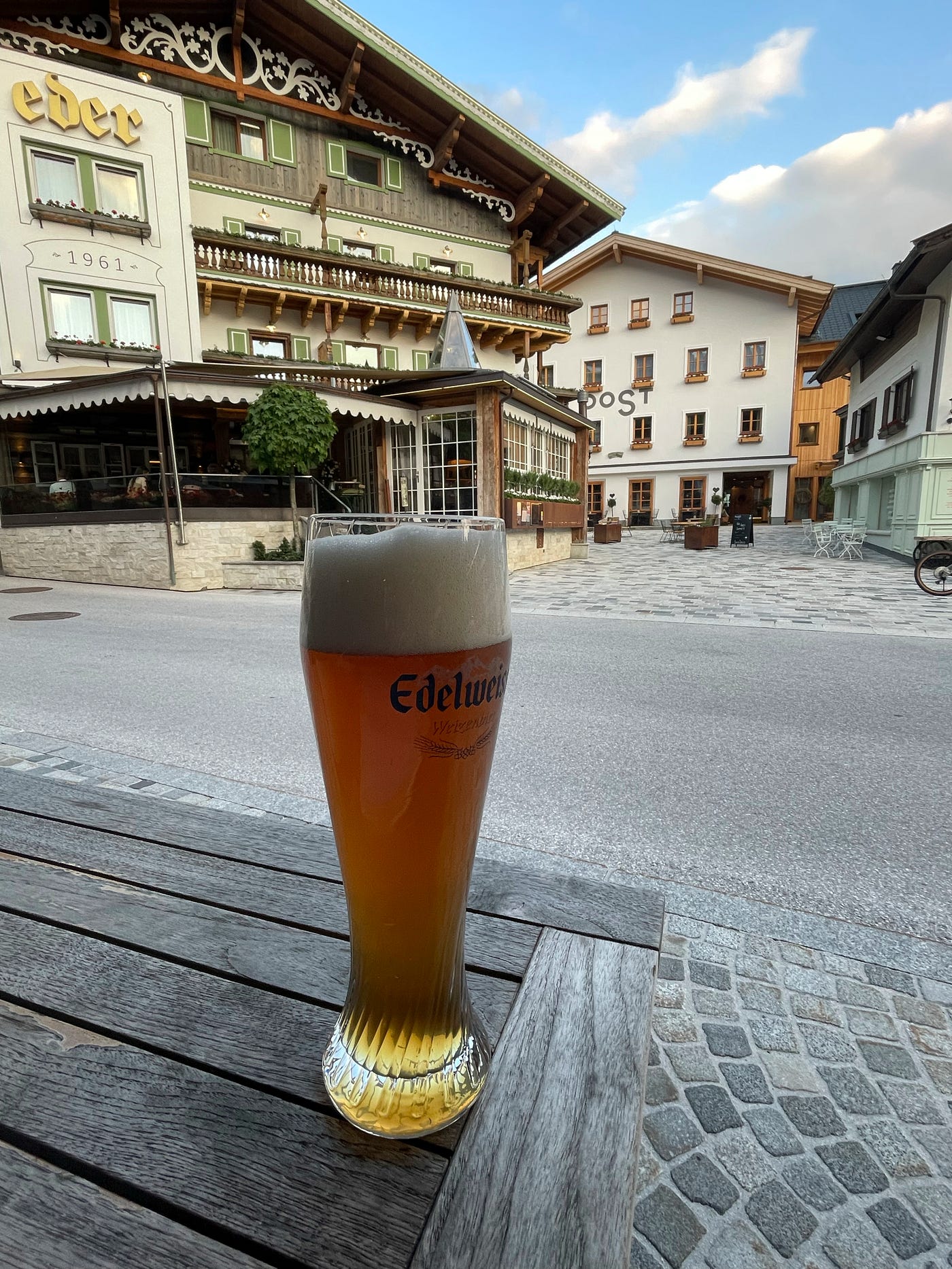 The descent of the day brought me to Maria Alm am Steinernen Meer with a big smile. The bags attached to my bike didn’t affect the handling and I was positively surprised with how they felt on the long downhill: bike was still fast, planted and sharp around the corners. The ski village welcomed me with a solid glass of Hefeweizen at an outdoor restaurant, surrounded by tourists and hikers resting quietly after their day adventures. Not finishing my ride back at the start felt amazing, no matter how trivial this sounds.
